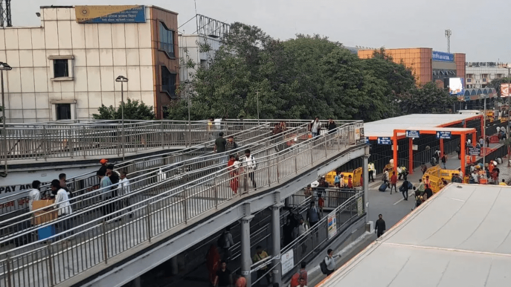 A little further, as the train moves towards Anand Vihar, the mood shifts again. Some passengers are preparing not just to finish their metro ride, but to continue towards the railway station nearby. Bags are held tighter, tickets are checked, and phones come out for quick coordination with family members.