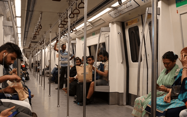 At Rajouri Garden the mood inside the metro shifts once again. Many passengers prepare to change towards the Pink Line, especially those heading to their offices. As soon as the train slows down, some people move quickly towards the doors already focused on the next platform.