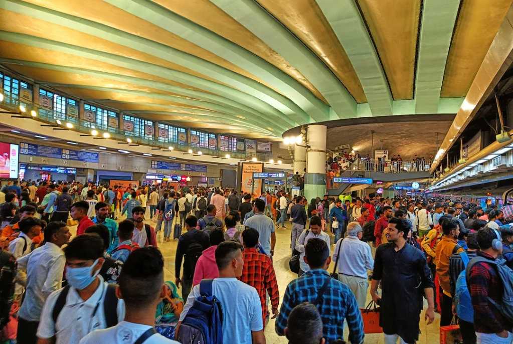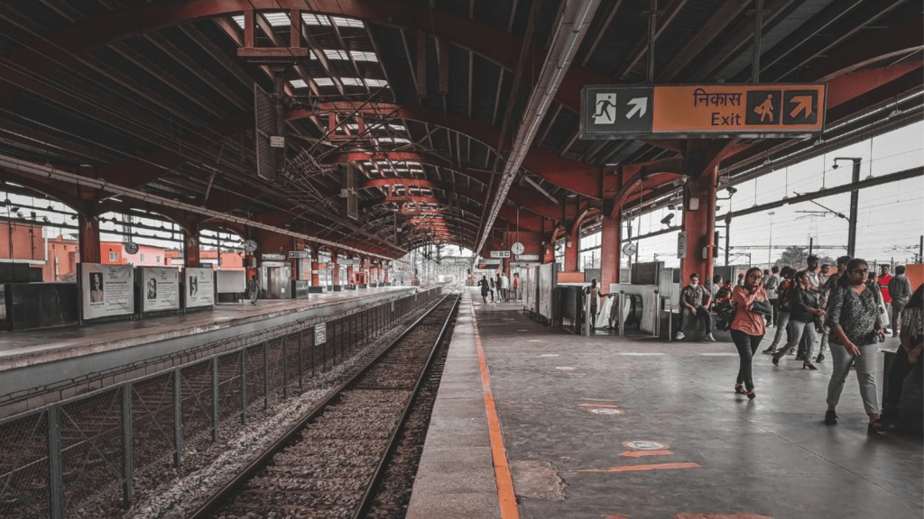 There is morning urgency in the air. Shoes walk fast. Escalators are full. Announcements repeat in Hindi and English creating a rhythm of movement.