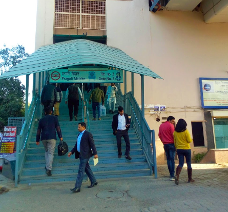 After the rush of earlier stations, Pragati Maidan brings a different rhythm into the coach. Many passengers who enter here are dressed in black coats, holding files and thick folders close to their chest. Their faces show preparation, not excitement.
