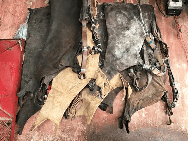 When new, the goat skin was raw. It had to be greased properly and dried in the sun. Once filled with water, the leather stretched. Tiny pores opened. After three to four months, holes would start appearing and the leather would weaken.