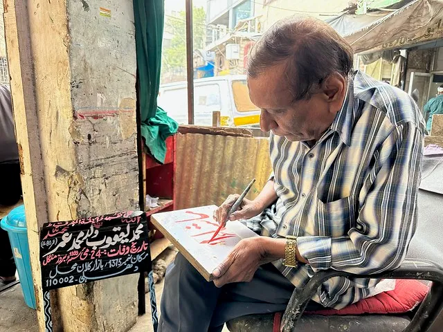 Even today, Shakeel continues to paint shop boards, nameplates, and Urdu lettering. If you walk through the lanes of Old Delhi and observe carefully, you might notice a small signature in the corner of some boards: “Shakeel Art.”